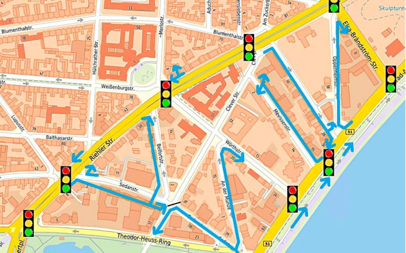 In der Eingabe der IGNNV gem. § 24 GO NRW vom 31.01.2022 wurde angeregt, die in der Karte markierten Straßen in Anliegerstraßen umzuwidmen und mit der Zusatzbeschilderung „Tempo 30“ und „Radfahrer frei“ zu versehen.